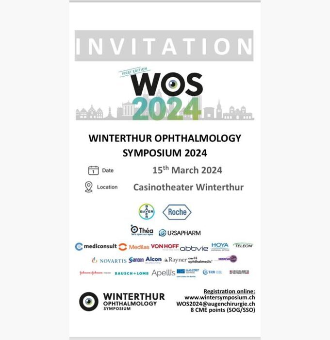 We cordially invite you to the 1st Winterthur Ophthalmologist Symposium. This convention with renowned speakers from Switzerland, Europe, South Africa and the USA will take place on 15 March 2024 at the Casinotheater Winterthur.